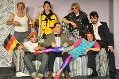 Mit ihrer neuen Komödie „Achtung Deutsch“ von Stefan Vögel präsentiert die Theaterbühne Karlstadt einen Theaterfrühling, der es in sich hat. Skurril, überdreht, frivol und manchmal auch ganz schön derb zeigen eine Frau und sechs Männer eine turbulente Slapstick-Komödie mit sowohl prallen wie auch subtileren Pointen.