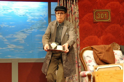 Nebenrollen gehören manchmal zu den besten. So auch bei Barbara Hubrich: Bob, der unfähigste Bühnenarbeiter, hat die Aufgabe, den Fortgang der Geschichte in drei Stockwerken darzustellen und die eigentlich identischen Zimmer entsprechend mit Wandbildern, Zimmernummern und verschiedenen Requisiten zu verändern. Dass er sich dabei blöd-möglichst anstellt, versteht sich von selbst. Das aber kommt bei Hubrich so umwerfend herüber, dass sie alleine schon ein Grund für den Theaterbesuch ist.