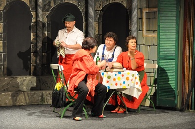 Großartig ist das Bühnenbild gelungen, welches das verfallene Amphitheater - Momos Wohnort - darstellt. Verantwortlich dafür zeichnen Peter Gsell und Werner Hofmann.