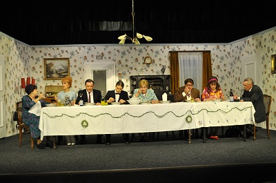 Anlässlich der Konfirmation von Fritz ist mal wieder die bucklige Verwandtschaft um den Familientisch versammelt. Die umtriebig, stets besorgte Hausfrau Grete wäre wahrscheinlich heute die Hubschraubermutter. Ansonsten ist alles versammelt, was zum Schreckensszenario der Familie aus der Nachkriegszeit gehört: Der Vater Hans versucht den Familienpascha, kann aber dem Alkohol nicht widerstehen, ebenso wie der ewig nölende Onkel Willi, mit seinen Kriegsgeschichten und dem Dauerclinch mit seiner Frau Anna. Das Paar Gerda und Manfred will sich durch vornehmes Verhalten von den anderen abheben. Dann mischt noch die vorlaute, frivole und doch unendlich frustrierte Cousine Hannelore die Familie gründlich auf.